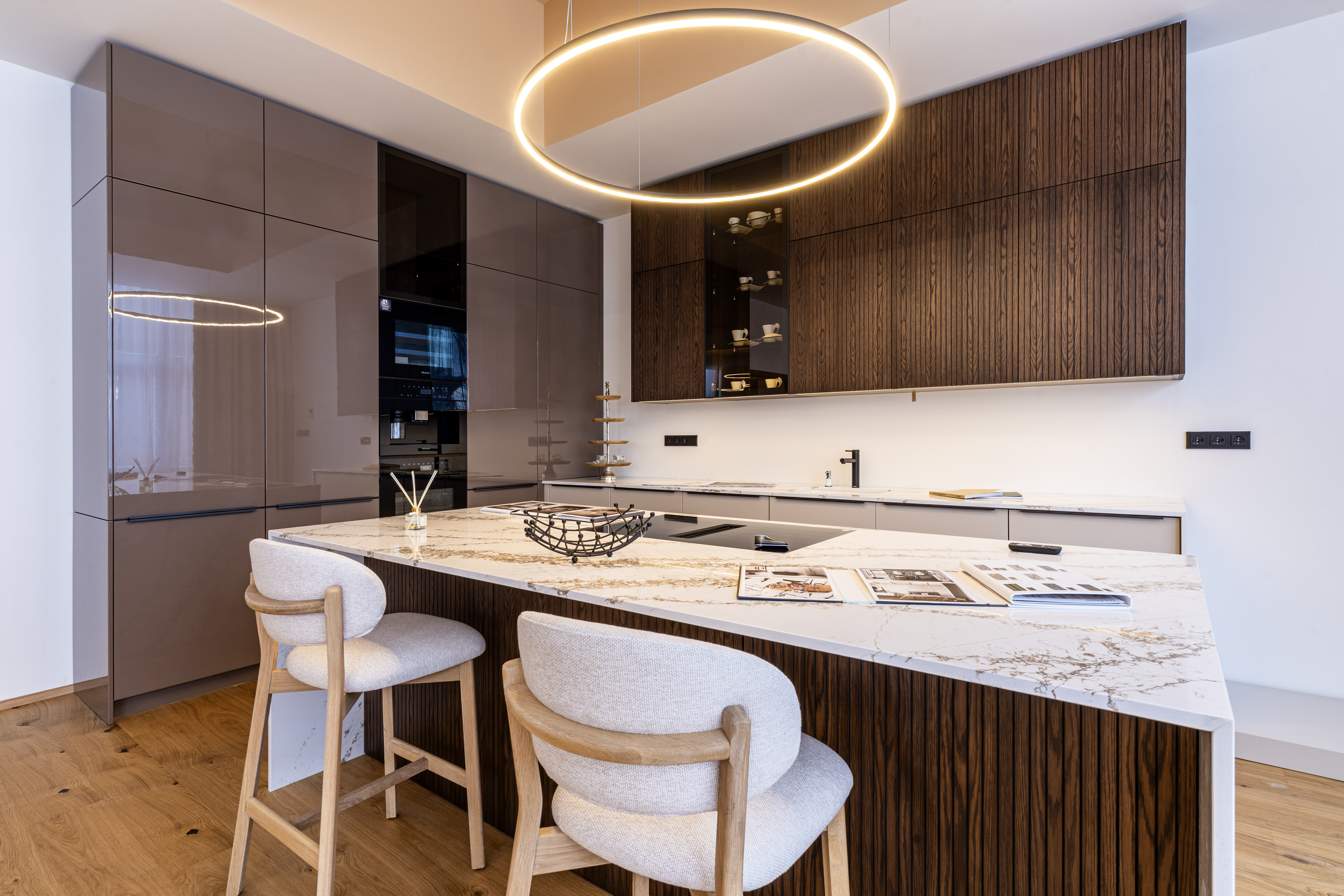 Kuchyně dnes neplní pouze praktickou funkci. V moderním bydlení se stává přirozeným centrem domácnosti – místem, kde začíná den, setkává se rodina i přátelé a odehrávají se každodenní momenty života. Také proto jsme v projektu Nová Myslivna věnovali návrhu interiérů a kuchyní mimořádnou pozornost. Pro jejich realizaci jsme zvolili českou značku HANÁK NÁBYTEK, která patří mezi přední výrobce designových kuchyní a interiérů na míru. Rozhodující pro nás byla především kombinace dlouholeté zkušenosti, české výroby a důrazu na kvalitní materiály i precizní zpracování.